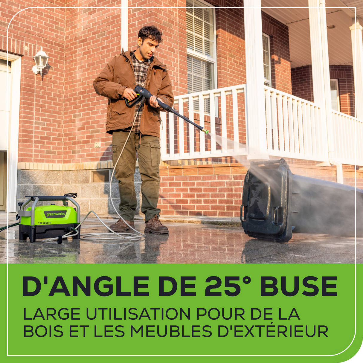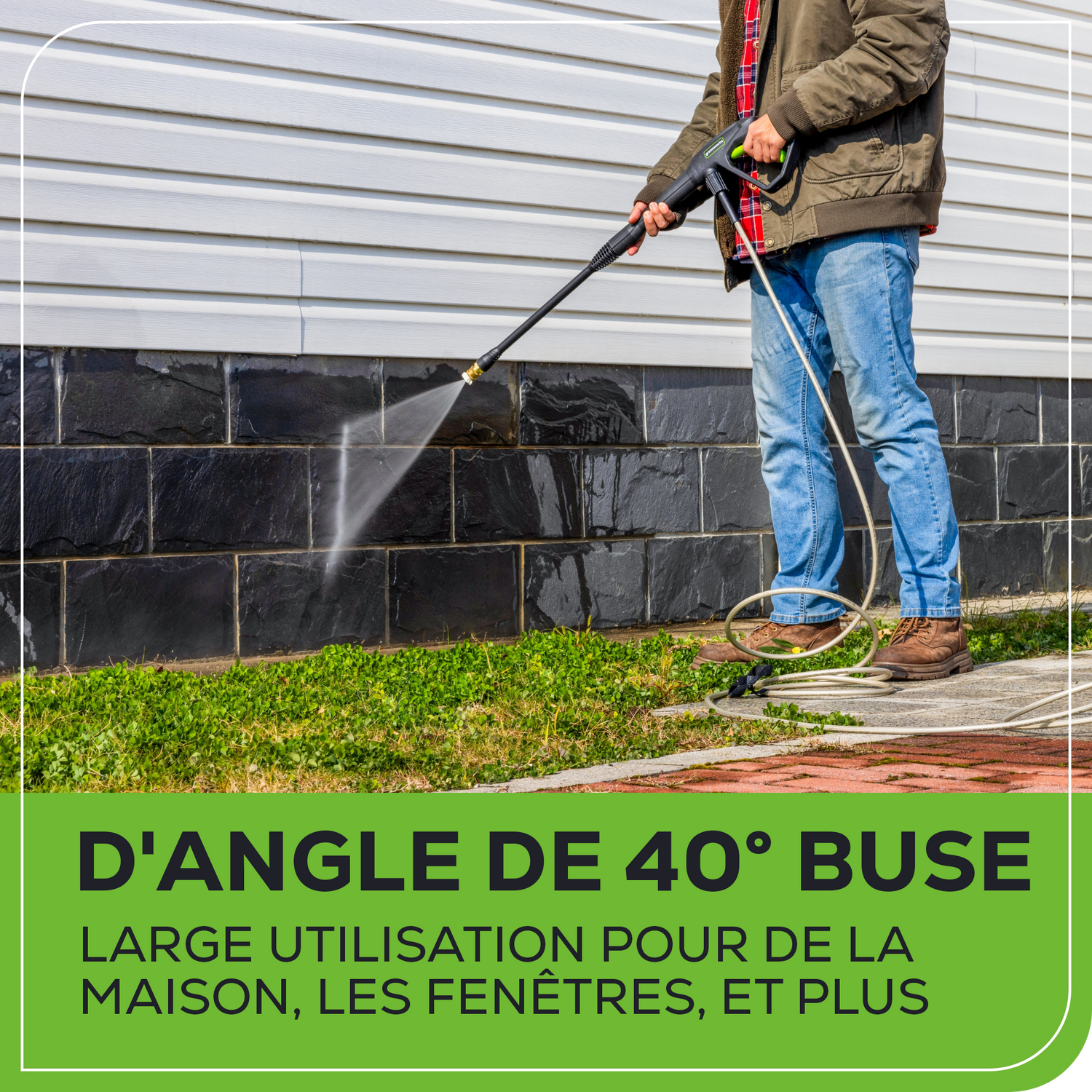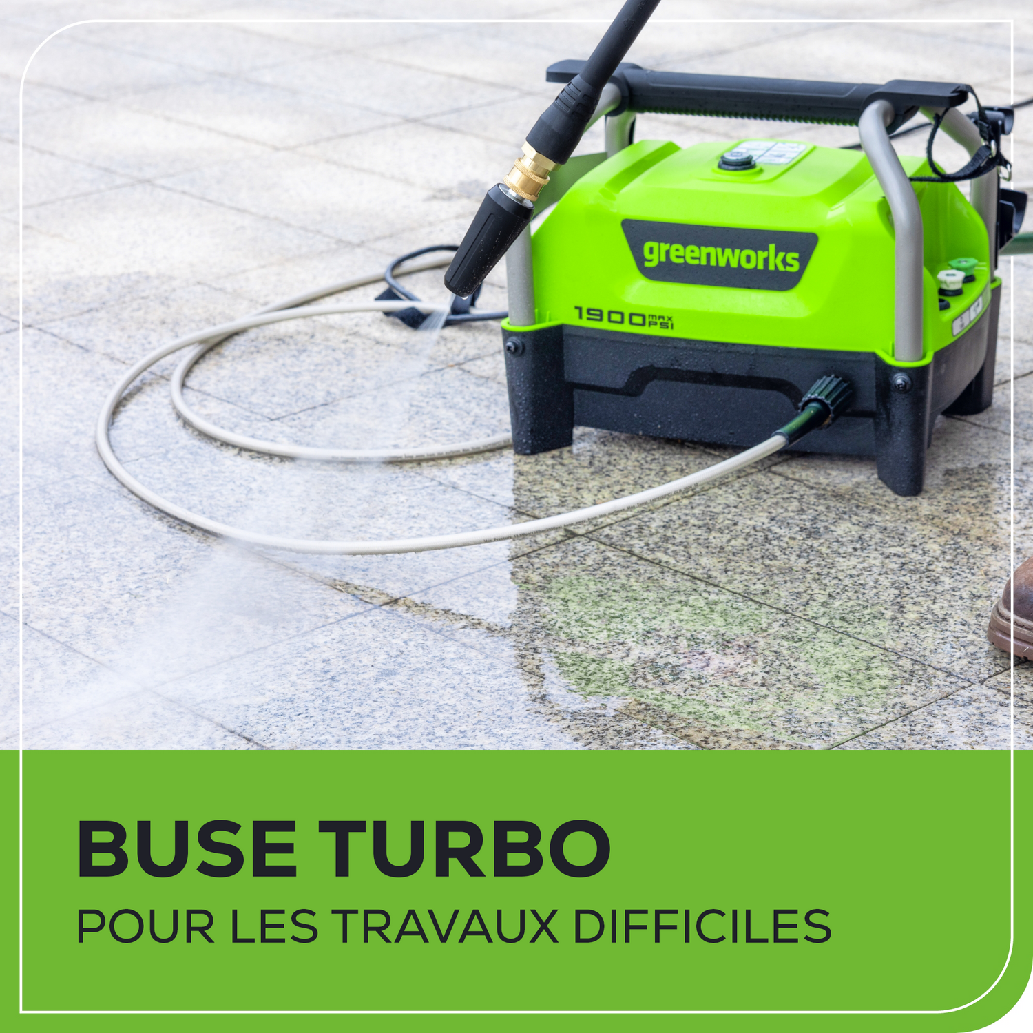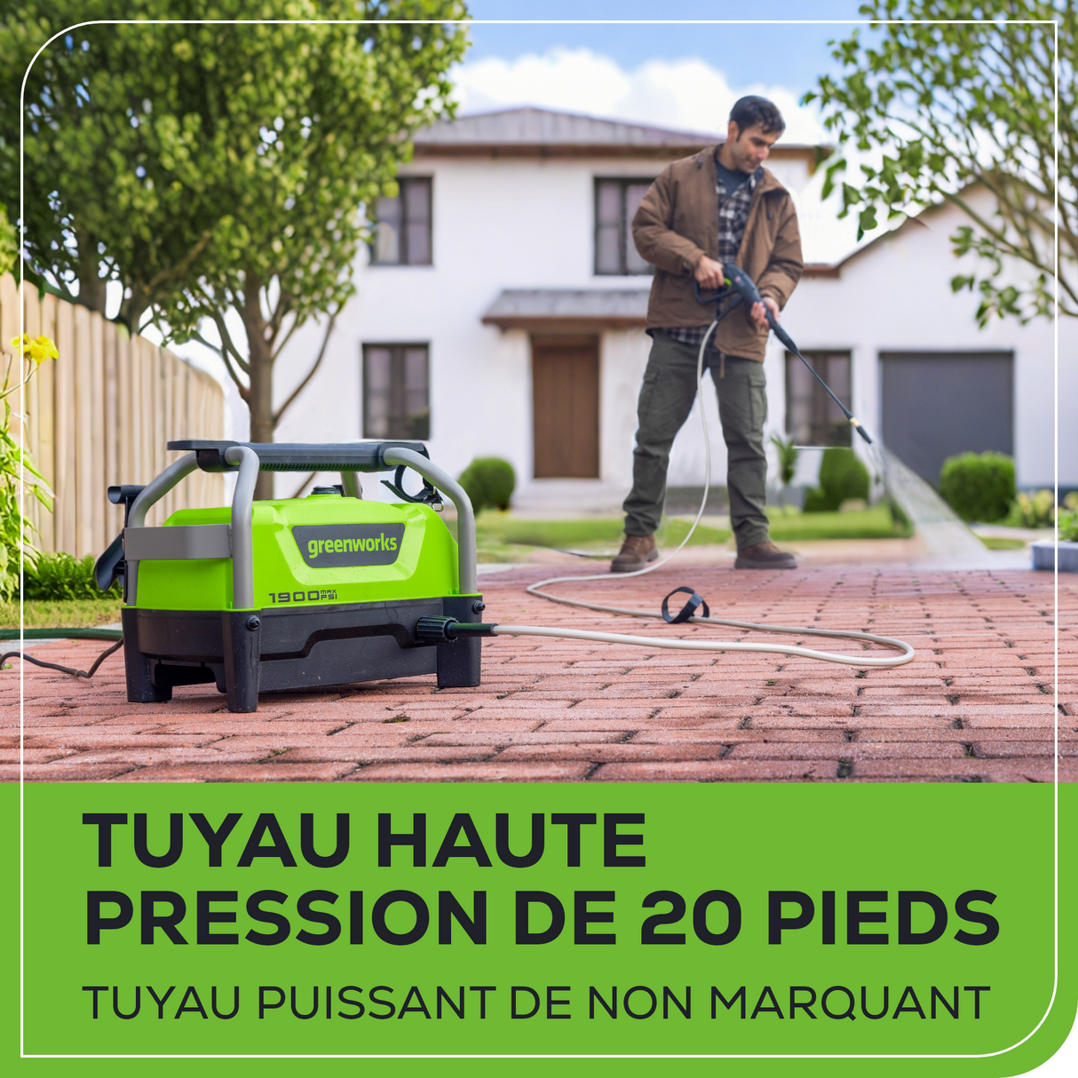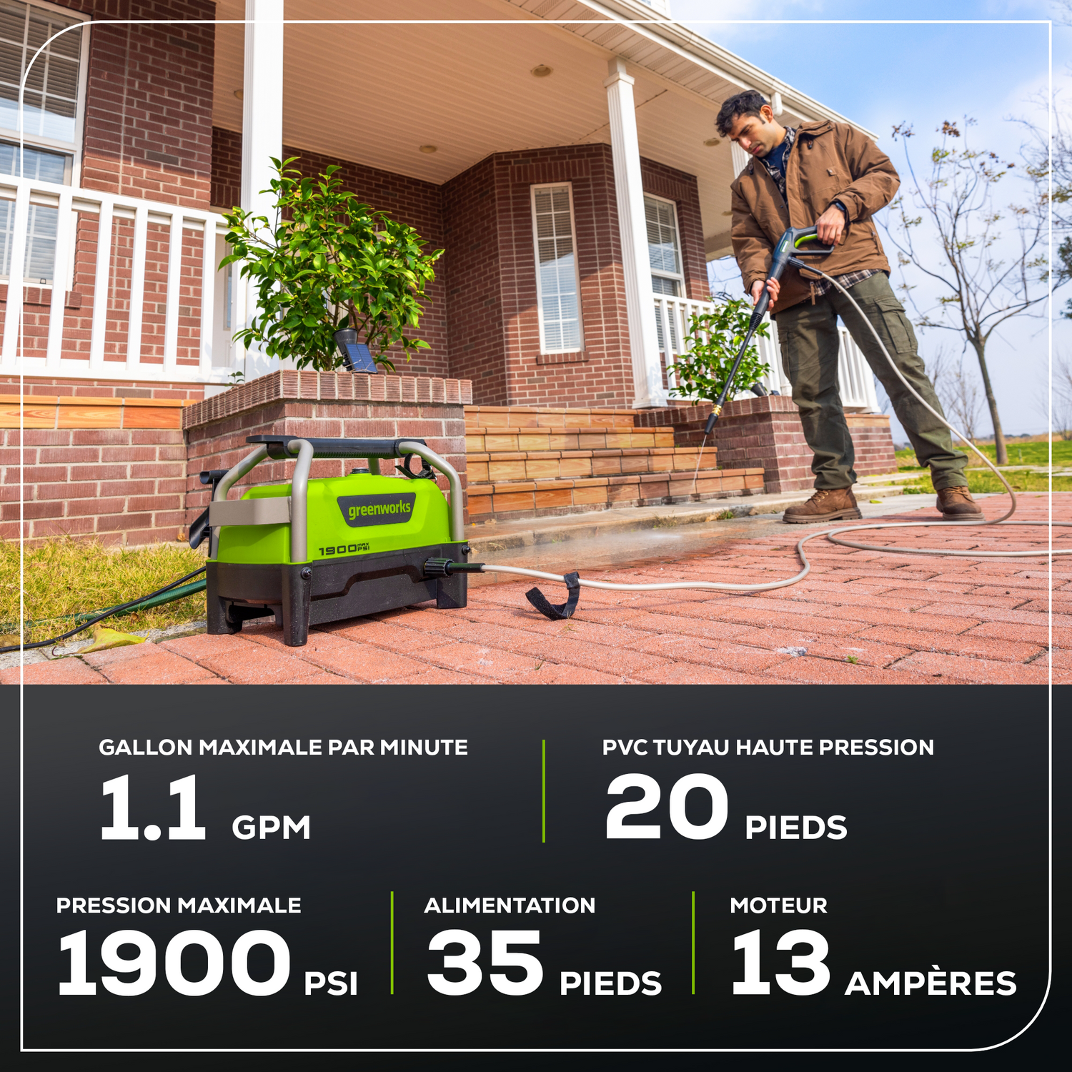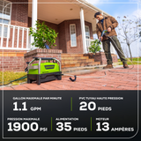 - [PUISSANCE] : 1 900 PSI (lb/po³) et jusqu'à 1,2 GPM pour un nettoyage efficace des zones résidentielles. Idéal pour les travaux de moyenne intensité, notamment le nettoyage des meubles de jardin, des barbecues, des allées, des trottoirs et des véhicules.