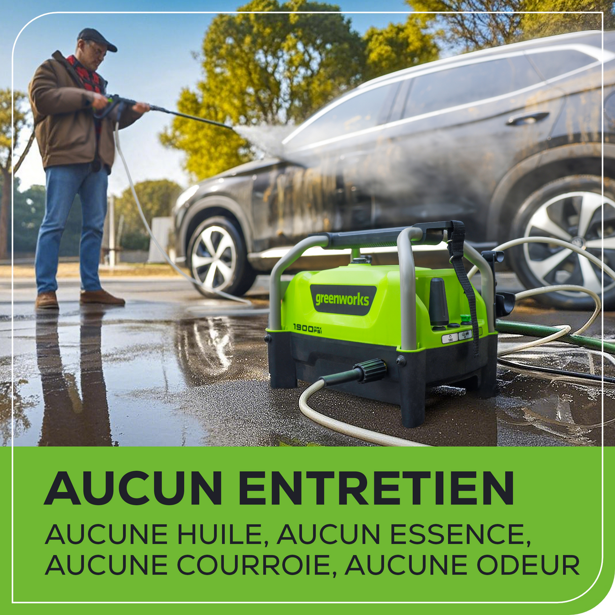 - [SILENCIEUSE] Un faible niveau sonore réduit les tracas pour vous et vos voisins. Vous pouvez donc utiliser un nettoyeur haute pression à tout moment de la journée !