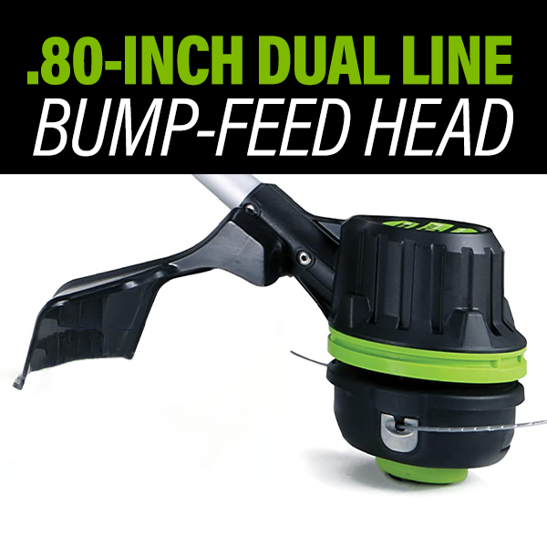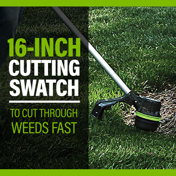 - ALIMENTATION PAR COUP Le chemin de coupe de 16 pouces permet d'effectuer le travail rapidement et la tête de coupe à double fil de 0,080 po facile à utiliser vous permet d'allonger le fil à la demande.