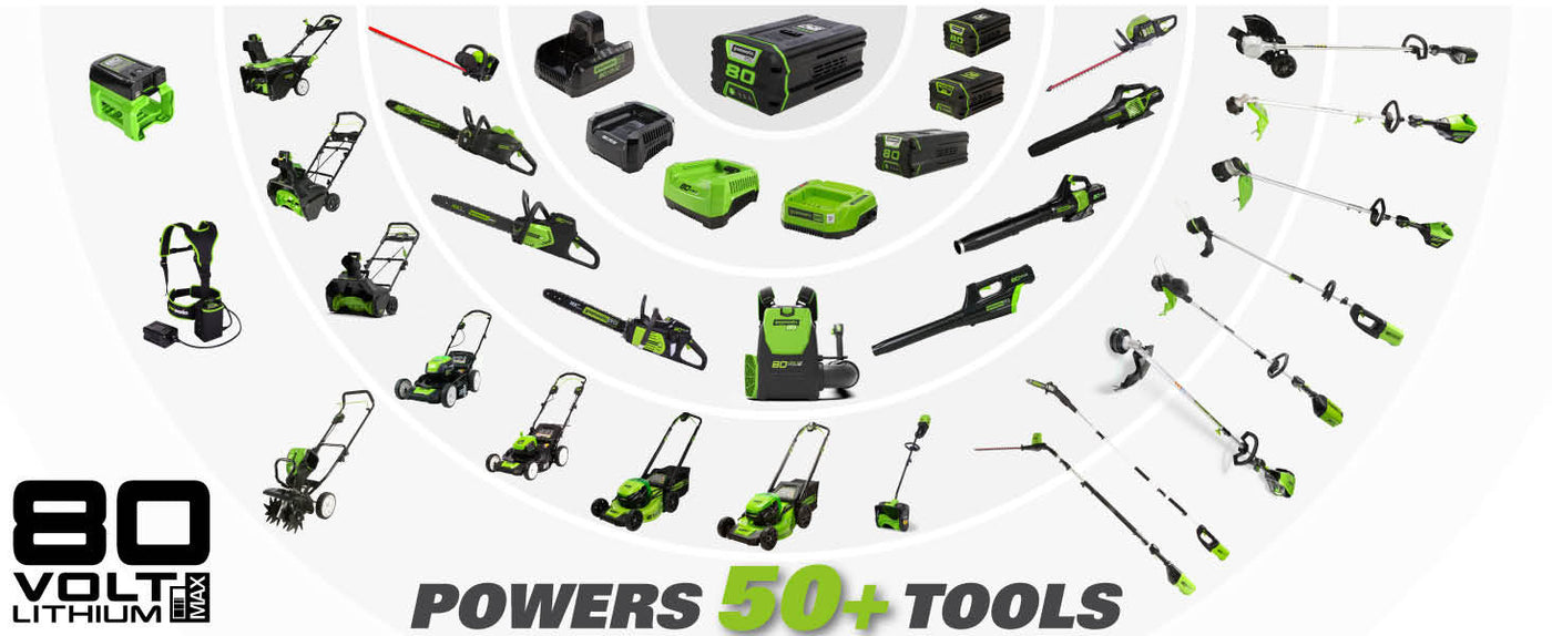 Lorsqu’il s’agit d’équipement électrique extérieur, vous mettez l’accent sur la « puissance ». Et pourquoi pas? Pour les propriétaires comme vous qui entreprennent des travaux petits ou grands, vous avez besoin d’une construction robuste et d’une performance optimale à long terme. La famille d'outils Greenworks Pro 80 V relève le défi avec un système de batterie universel qui fonctionne sur plusieurs produits, des moteurs à haut rendement et une technologie intelligente innovante. Tous les outils Greenworks Pro 80 V bénéficient d'une garantie limitée de 4 ans sur les outils et la batterie.