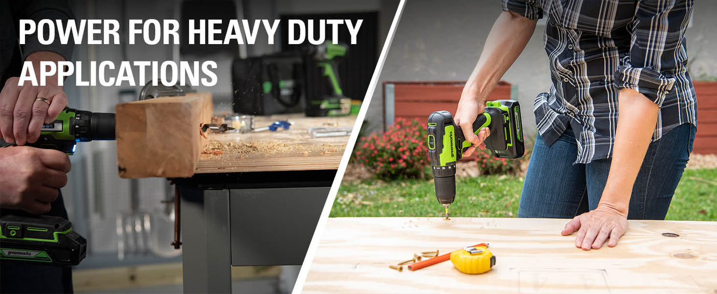 The Greenworks 24V combo kit is the perfect solution for homeowners looking to make the switch to battery power. It includes a 1/2 in. brushless drill/driver and a 1/4 in. brushless impact driver, both of which are equipped with an LED light, allowing for work at night and in dark spaces. Both tools run on 24-volt lithium batteries with a 3-hour charger included, providing maximum runtime for the sawing, drilling, and hammering you do around your home
