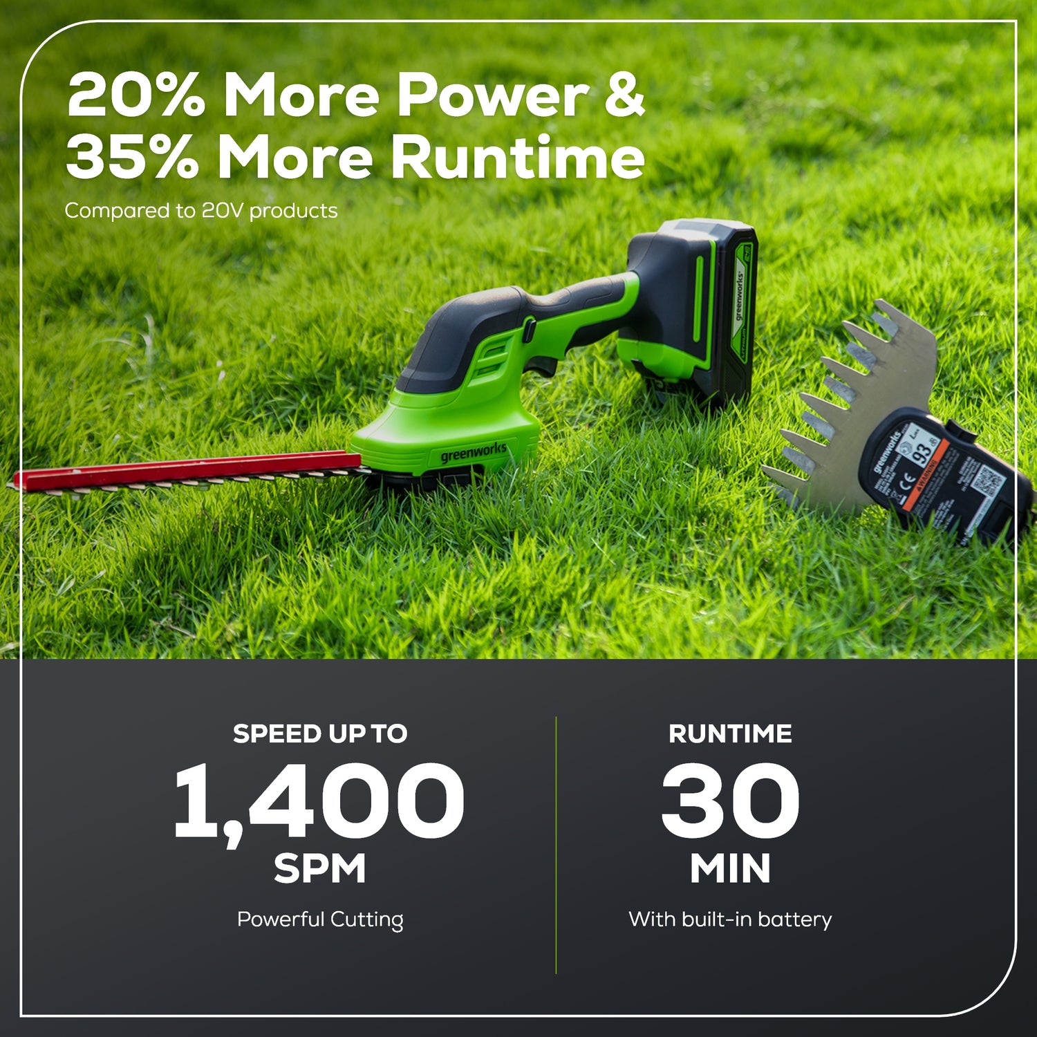 - ✓Tool-less Transition - Tool-less transition from grass shear to shrubber.