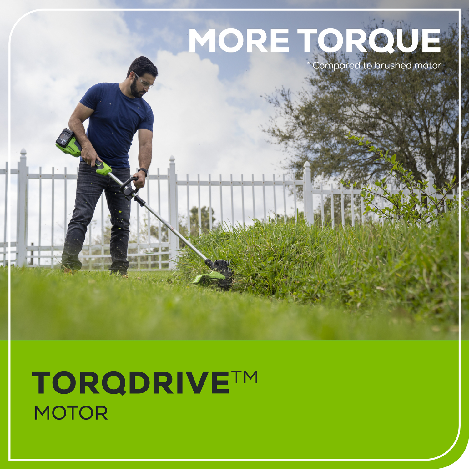 - TORQDRIVE™ TORQDRIVE™ motor provides 30% more torque to power through the toughest grass and weeds.