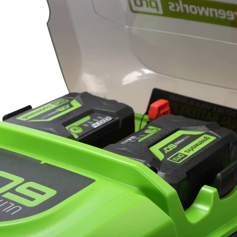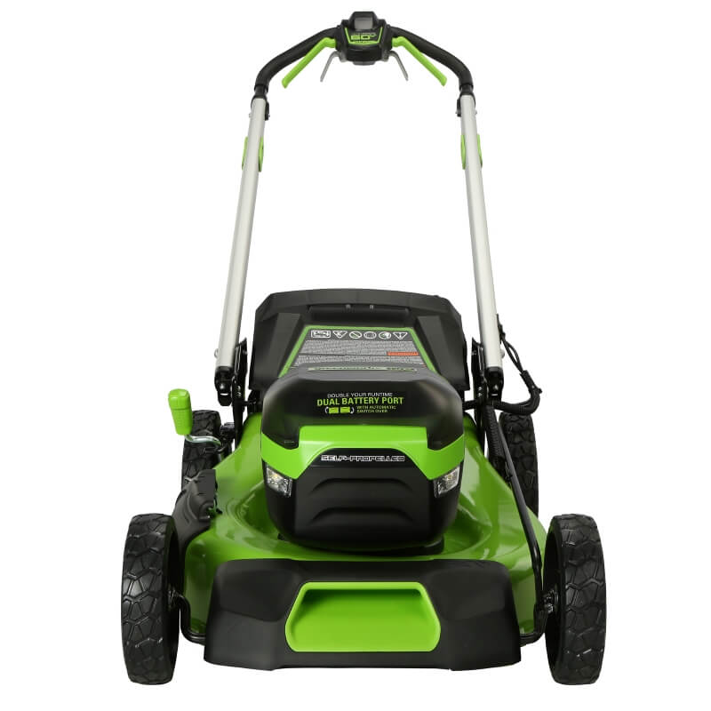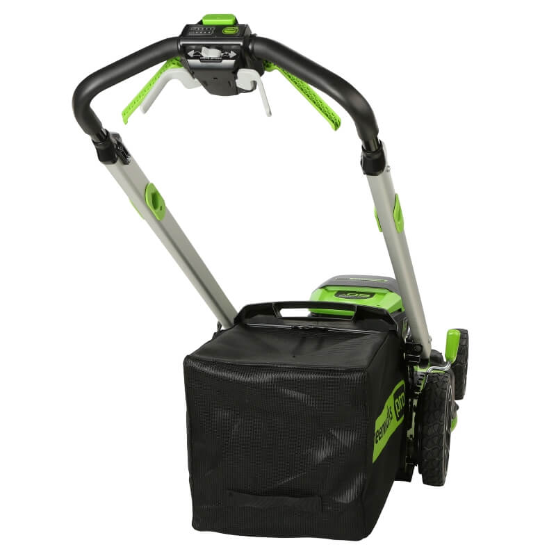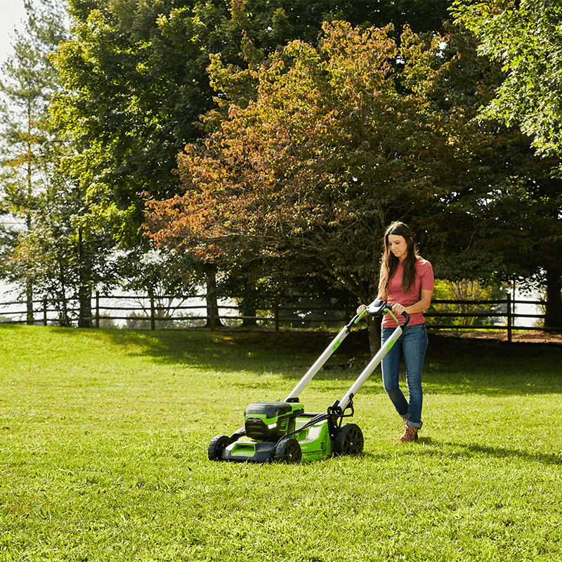 Welcome to a Life. Powered. by Greenworks. When it comes to outdoor power equipment, you put the emphasis on "power." And why not? For homeowners like you who take on jobs big or small, you need a cordless battery lawn mower with heavy grade construction and long-lasting peak performance. The Greenworks 60V battery lawn mower family meets the challenge with a universal battery system that works across multiple products, high-efficiency brushless motors, and cutting edge features. Kick gas to the curb and go green with this eco-friendly battery-powered lawn mower that delivers no fumes, no mixing, no maintenance, and no pull cords. Let Greenworks help you take the work out of yard work. Keep your lawn pristine with the Greenworks 60V 21" Brushless Self-Propelled Battery Lawn Mower, complete with 5.0Ah battery and rapid charger for extended runtime. This powerful electric battery lawn mower features a durable steel deck, 7 cutting heights, innovative SmartCut technology that automatically adjusts power based on grass thickness, Turbo Mode for thick grass, and folding handles for compact storage. Plus, all Greenworks 60V battery lawn mowers feature a 4 Year Limited Tool & Battery Warranty to ensure your investment is protected.