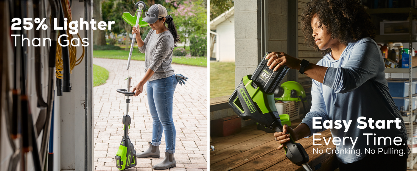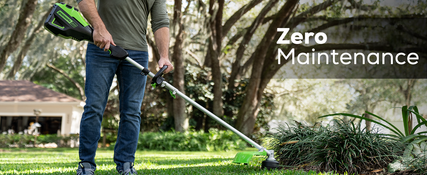 Welcome to a Life. Powered. by Greenworks. Landscaping has never been easier with the Greenworks Pro 80V System; the most powerful cordless battery platform in outdoor power equipment. You can now breeze through your yard work with zero gas, zero emission and zero maintenance. Go from zero to power with a push of a button and get you through the task at hand with less vibration, less noise and less mess. Get all your trimming done in no time with the Greenworks 80V 16" Top Mount Attachment Capable String Trimmer + Edger Attachment, Extra Bulk Line, 2.0 AH Battery and Charger Included. This cordless grass trimmer features a 16-inch cutting path, brushless motor and can be used with most brands of attachments. Plus, all Greenworks Pro 80V tools include a 4 Year Limited Tool & Battery Warranty to ensure your investment is protected.