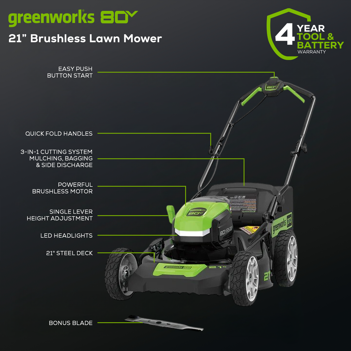 80V 21" Brushless Lawn Mower, 4.0Ah Battery and Charger Included BONUS: Extra Blade