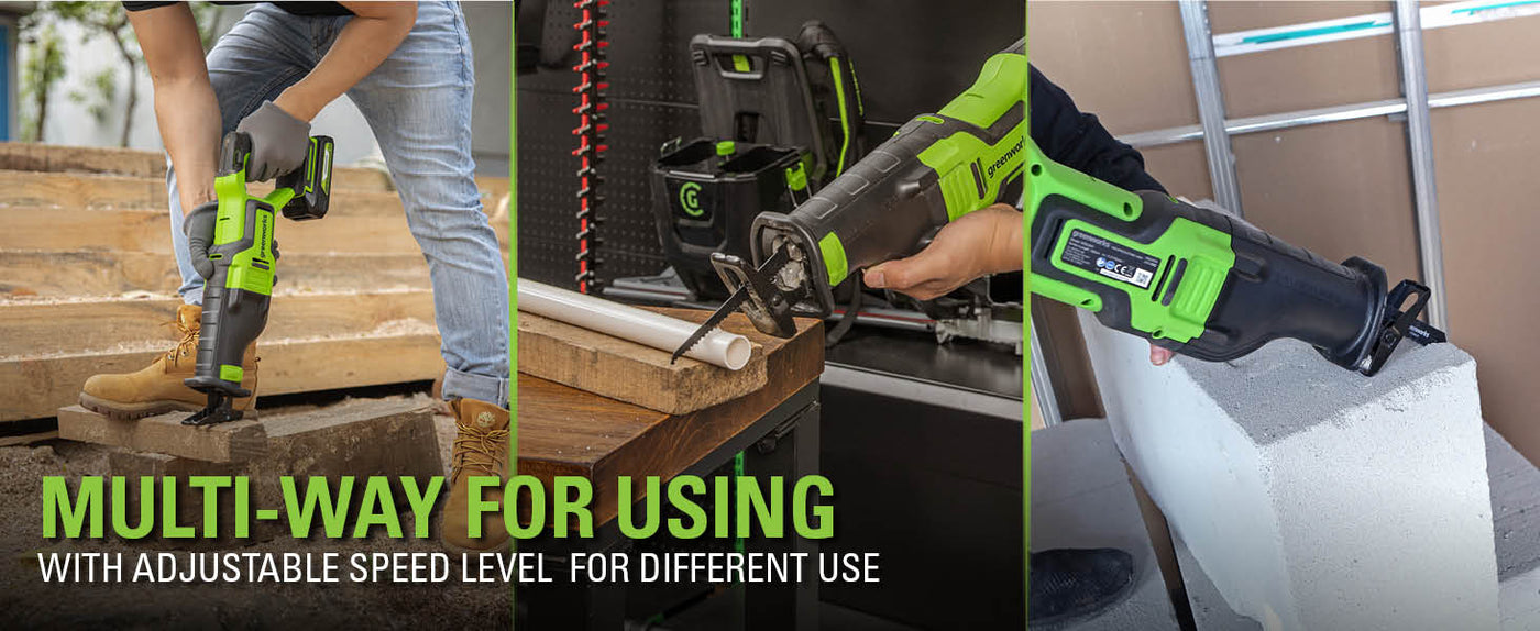 The Greenworks brushless reciprocating saw delivers up to 50% more run-time and increased performance thanks to the high efficiency brushless motor. The 1"blade delivers up to 0-3000 strokes per minute with variable speed for cutting through a variety of material. Features a tool-free blade release system for quick and easy reciprocating saw blade changes,