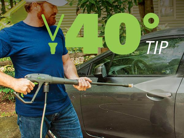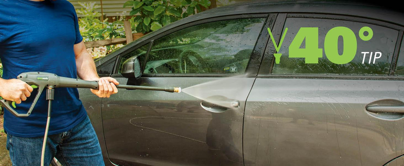 Welcome to a Life. Powered. by Greenworks. The world’s most powerful residential electric pressure washers! Heavy-duty household cleaning requires tools that are as serious as you are. Whether it's the car, the house, the deck or the driveway, your stuff is sure to shine. The Greenworks 2300 PSI 1.2 GPM Cold Water Electric Pressure Washer is sure to impress. Boasting up to 1.2 GPM of water flow, it's powerful, reliable and built for the toughest cleaning tasks. With a hassle-free push-button start, it powers up easily and gets to work fast. With a rugged metal spray gun, it's tough and durable, and the pump features an anodized coating that's resistant to corrosion. It's equipped with an extra-long 35-ft power cord with in-line GFCI and water-resistant power plug, hassle-free 25-ft kink-resistant hose that eliminates frustrating hose tangles, never-flat wheels for easy transportation, substantial 2-liter on-board soap tank, and on-board accessory storage. Backed by a 3-year tool warranty, it's built to stand up to most stubborn dirt and grime for years to come.